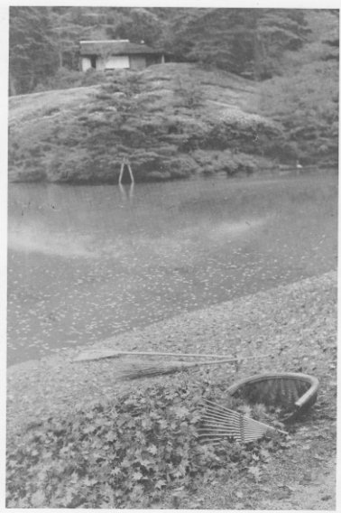 There are evidences of this characteristic in the construction of our gardens, especially in the use of rocks. But I shall not dwell on this point. It may be sufficient to note here that considerable thought is given in garden construction not to have things too apparent. There must be something beyond what one can see at a glance, something that must be sought out, something that is partially, if not entirely, hidden. People take delight in concealing something charming in their gardens to be discovered only by a keen observer, just as they rejoice in doing kind deeds to others in secret to be found out by accident. The waterfall in the garden should not be fully exposed to view; it should have at least the branch of a tree leaning across it to conceal it partially. The stone lantern should stand close to a tree so that it may be hidden in part.