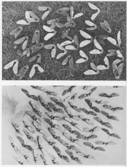 Plate 4. Seeds of the maple-tree. Upper: those of Japan, resembling butterflies; gathered from the author's garden in Tokyo. Lower: those of America, suggestive of cicadas; gathered from the University of Oregon campus.