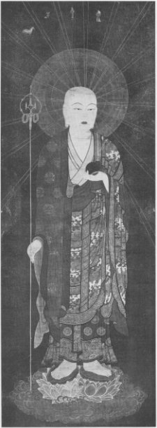 In this connection I may mention our great longing for solitude. It is perhaps an expression of our strong love of nature. We have a great longing to detach ourselves from this world, and live in the heart of nature where we may enjoy a secluded life. Losing ourselves in the beauty of nature is the ideal. The expression "yo o suteru," meaning to throw away the world, reveals the deep yearning hidden in the bottom of our hearts which we hope to realize sometime before the end of our lives. We dream of the tranquillity and serenity expressed in the wooden figures of Miroku Bosatsu of the Chuguji nunnery and the Koryuji temple, in the clay statues of Bosatsu popularly known as the Nikko (sunlight) and Gakko (moonbeam) in the Sangatsu-do, or in the paintings of Jizo Bosatsu and Fugen Bosatsu in the Imperial House' hold Museum. Nearly every one dreams of the ideal future - of living out one's days quietly, away from the hustle and bustle of life when the time shall come for retirement, after giving up one's place to a successor. There are many who live in a world of their own, ignoring entirely what goes on about them. They live in the world, but apparently do not belong to it. There have been many haiku poets who have abandoned this world from choice and nearly every Japanese is something of a haiku poet. (Plates 1, 6, 7, 9.)