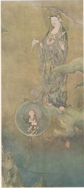 Frontispiece. "Merciful Mother Kwannon." Painted on silk by Kano Hogai. In the possession of the Tokyo School of Art.