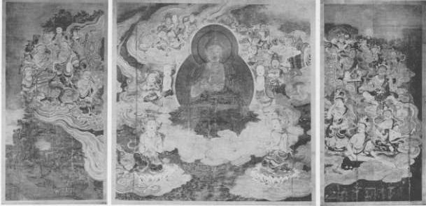 Plate 142. "Twenty-Five Bodhisattvas." Painted on silk in colour. Attributed to Eshin Sozu (XII century). "National Treasure" owned by Daiyen-in and other temples of Koyasan Monastery.