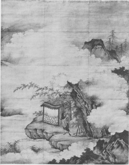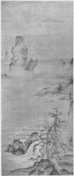 Plate 10. "Landscape." Attributed to Shubun (ca. 1420). Painted on paper, slightly coloured. Shown at the Special Loan Exhibition of Art Treasures from Japan held at the Museum of Fine Arts in Boston. Owned by Baron Koyata Iwasaki, Tokyo.