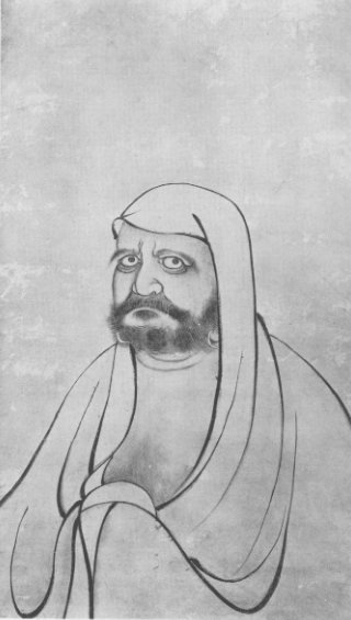Plate 17. "Daruma." Portrait of the founder of the Zen sect of Buddhism. By Soga Jasoku (known also as Soyo); died 1483. Painted on paper, in colour. "National Treasure" owned by the Yotoku-in, Kyoto.