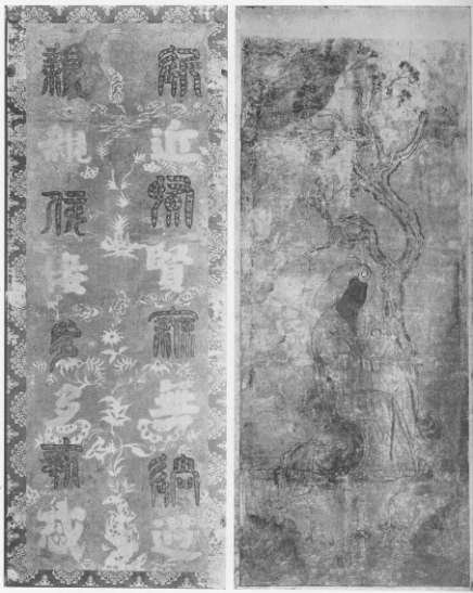 Plate 47. Left: Screen Panel with "Seal" Style Characters formed of bird's feathers. The inscription on the screen of which this panel shows a portion toward the end, runs as follows: