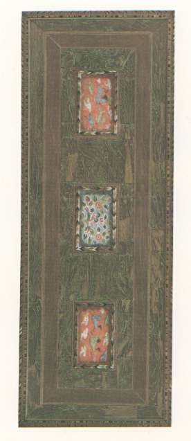 Plate 52. Lid of a Box Wood stained with sapan-juice and decorated with a picture of three children amidst floral designs painted in gold and silver. Middle Section.