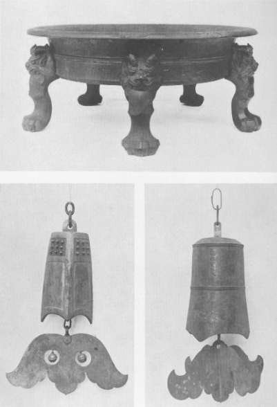 Plate 63. Top: Gilt Bronze Brazier. Supported by five legs shaped like an animal's foot and surmounted by a horned animal head. It may have been used as a censer, though it is nearly a foot and a half in diameter. Middle Section.