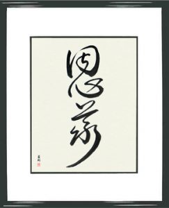Japanese Framed Calligraphy – Moral Obligation (ongi)